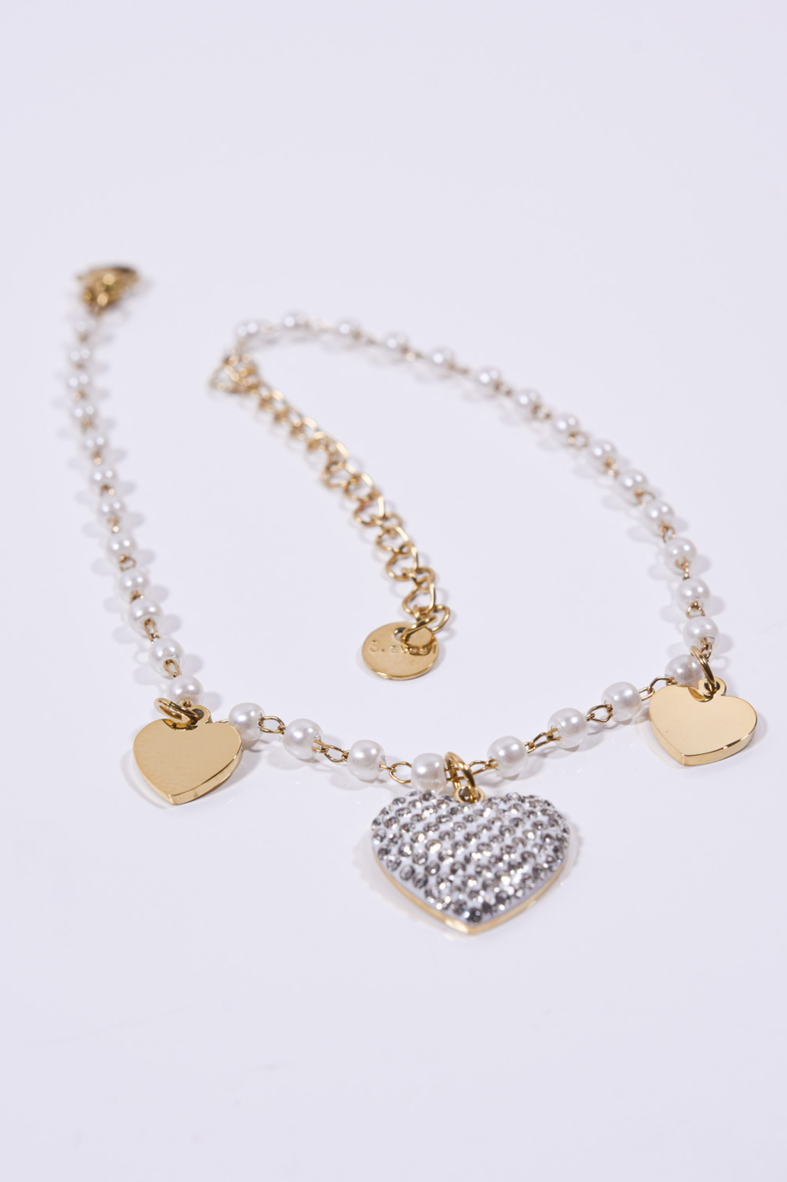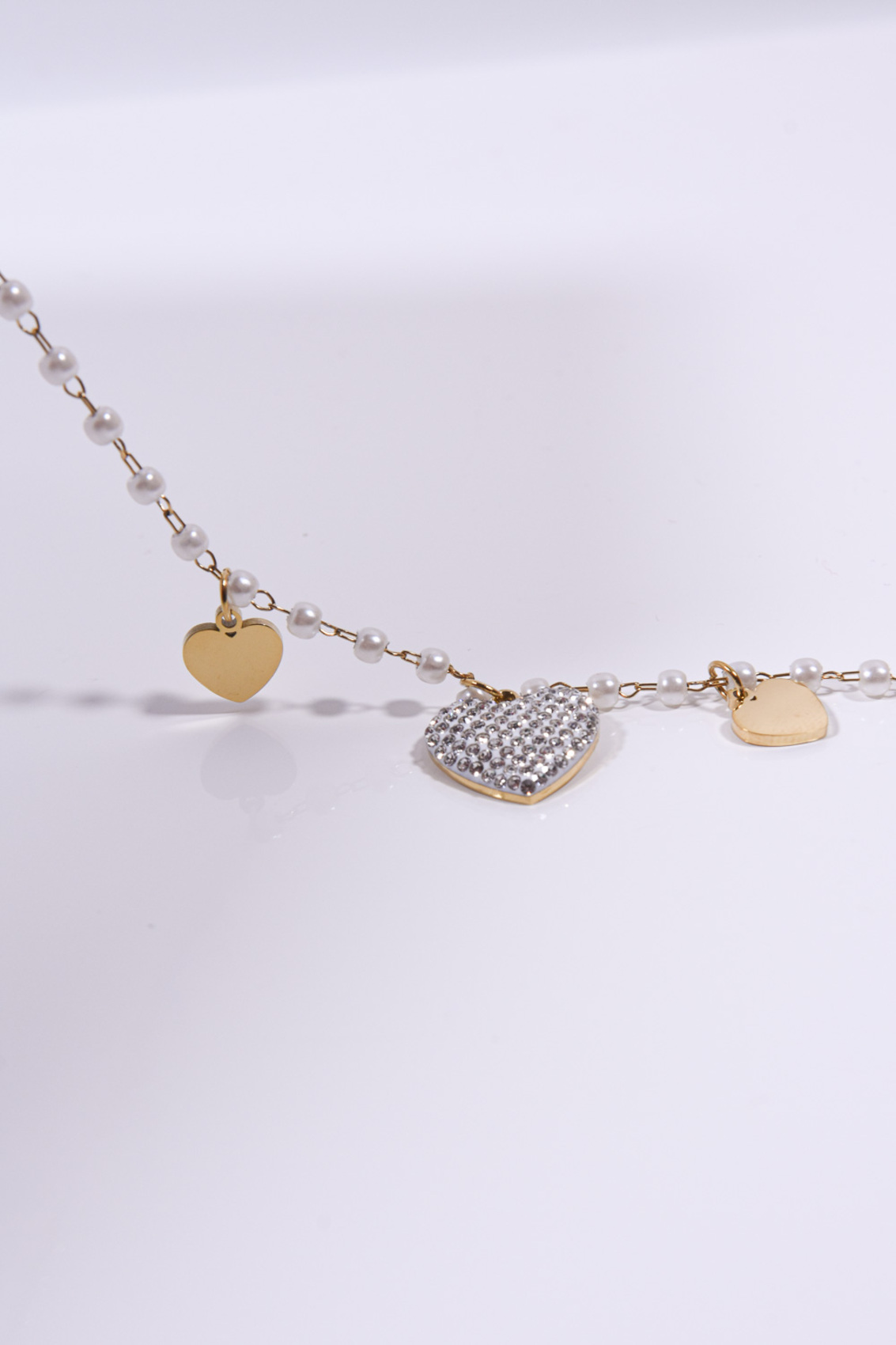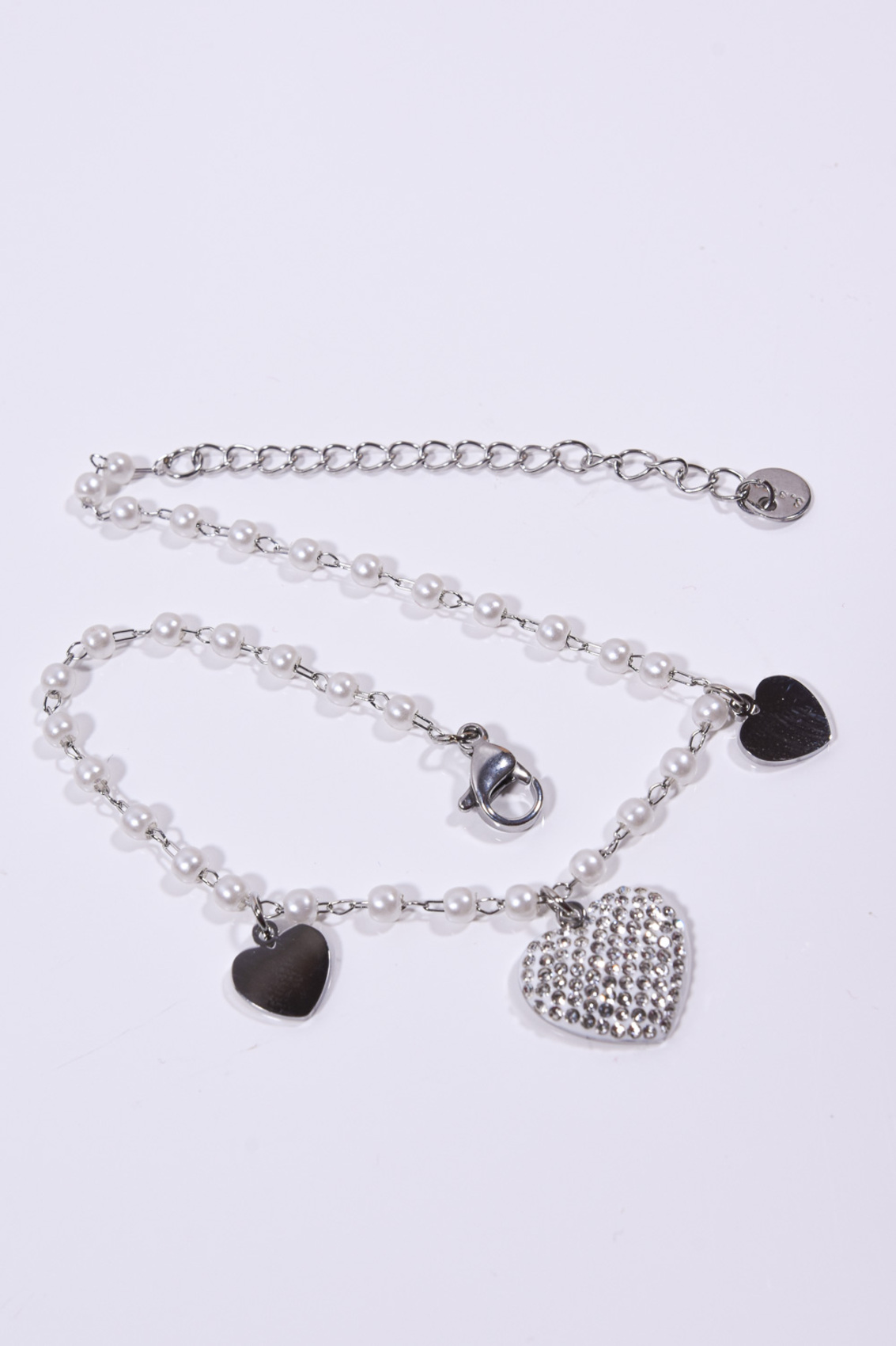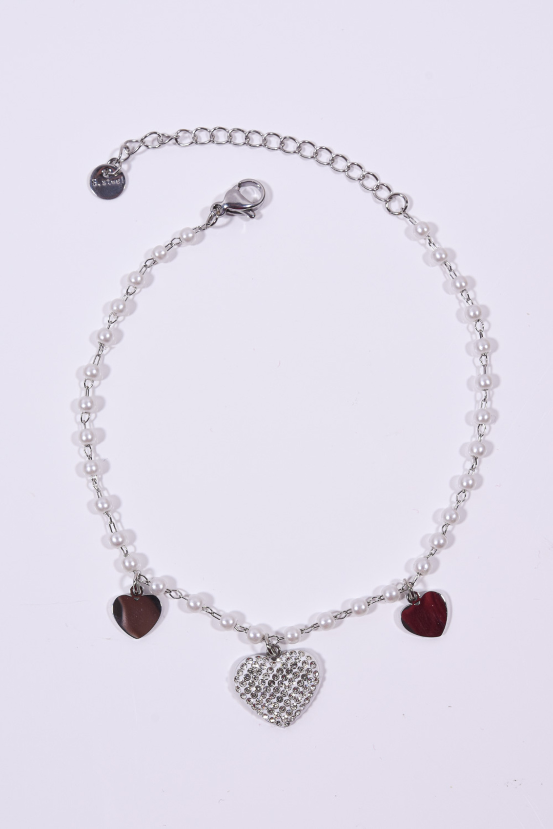 Αλυσίδα Ποδιού με Πέρλες & Καρδιές