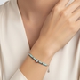 "Ασημένιο βραχιόλι με διακοσμητικές μπλε χάντρες και διακριτικό ματάκι. Ιδανικό για καθημερινή χρήση, προσθέτει μία κομψή και προστατευτική πινελιά στις εμφανίσεις σας."