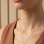 Το κολιέ της εικόνας διαθέτει μια χρυσή αλυσίδα με ιδιαίτερο μενταγιόν, διακοσμημένο με το σύμβολο του ματιού και μικρά μπλε στρας. Το σχέδιο είναι κομψό και μίνιμαλ, με έντονα στοιχεία που αποπνέουν προστασία και θετική ενέργεια. Το μενταγιόν συνδυάζει την παραδοσιακή αισθητική με μια σύγχρονη πινελιά, καθιστώντας το ιδανικό για καθημερινές αλλά και πιο προσεγμένες εμφανίσεις. Προσθέτει μια διακριτική λάμψη και κομψότητα σε κάθε σύνολο.